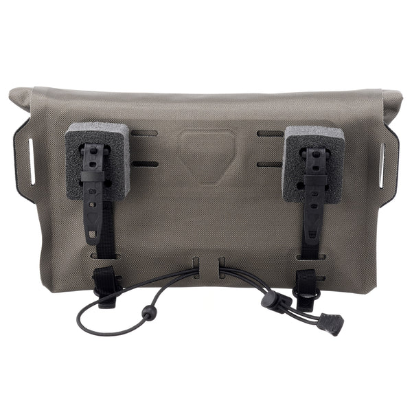 Lenkertasche mit Bar-Lock Halterungssystem und Rollverschlussöffnungen an beiden Seiten. Bitte beachten! Die Lenkerhalterung ist separat erhältlich. DetailsDie Innovation des Handlebar-Pack Flex liegt in der Kombination mit unserem Bar-Lock Halterungssystem, das eine besonders einfache, aber sehr stabile Befestigung ermöglicht. Durch die robuste Konstruktion, bestehend aus einer internen Kunststoffversteifung und einer zusätzlichen Fixierung am Steuerrohr, bleibt die Tasche auch auf unwegsamem Gelände zuverlässig in Position.Mit ihren beidseitigen Rollverschlüssen gewährleistet das Handlebar-Pack Flex einen schnellen und einfachen Zugriff auf den Inhalt. Externe Kompressionsriemen ermöglichen das sichere Befestigen von zusätzlichem Equipment, und vier integrierte Haken bieten die Option, ein Accessory-Pack zur Volumenerweiterung anzubringen. Zusätzliche Kordelzüge bieten weitere Befestigungsmöglichkeiten für dein Equipment.Außerdem bietet die wasserdichte Lenkertasche ausreichend Platz für Schlafsack und Isomatte mit kleinem Packmaß und sorgt für eine ausgeglichene Lastenverteilung am Fahrrad. Wie alle unsere Produkte, wird auch das Handlebar-Pack Flex in unserer eigenen Produktion in Deutschland gefertigt und mit einem hohen Anspruch an die Reparierbarkeit konzipiert. Taschentyp: EinzeltascheMaße: H: 20cm B: 53cm T: 20cmZuladung: 5kgVolumen: 15LMaterial: PS21R, PS33