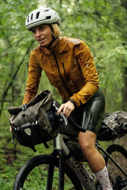 Unverzichtbar, wenn du auf deiner Bikepacking-Tour in der Natur übernachten willst: Das ORTLIEB Handlebar-Pack ist die wasserdichte Gepäckrolle mit 9 oder 15 L Volumen für Schlafsack und Isomatte. Außerdem sorgt sie für eine ausgeglichene Gepäck- und Lastenverteilung am Rad. Dank der beidseitigen Rollverschlüsse kannst du jederzeit ganz leicht auf den Inhalt zugreifen. Kompressionsriemen an der Außenseite ermöglichen das Verstauen und Anbringen von weiterem Equipment. Auch vier Haken für die Anbringung des Accessory-Packs als Volumenerweiterung sind bereits vorhanden. Das Montagesystem, bestehend aus Distanzstücken und zwei Gurtbändern mit darunterliegenden haftstarken Klettverschlüssen, sorgt für eine stabile Befestigung an jedem Lenkertyp, auch die Anbringung an Carbonlenkern ist möglich. Eine Kunststoffversteifung im Inneren des Handlebar-Packs und eine Fixierung am Steuerrohr geben verlässliche Stabilität – in jedem Gelände. Die kleinere Version lässt sich auch als Kompaktklasse unter den Bikepacker-Lenkerrollen bezeichnen: Mit nur 40 cm Länge ist diese wasserdichte Lenkertasche die richtige Wahl für alle, die mit Offroad Drop Bars, Renn- oder Crosslenkern auf Bikepacking-Tour gehen. Auch in Sachen Gewicht macht sich die geringe Breite positiv bemerkbar. Die 15-Liter fassende Tasche bietet dank zusätzlicher Kordelzüge die Möglichkeit weiteres Equipment unterzubringen. Produktdetails: Haken für die Anbringung des Accessory-Packs Auch für Carbon-Lenker geeignet Gurtbänder mit Klettverschluss als Montagehilfe Niedriges Gewicht Leuchtstarke 3M Scotchlite Reflektoren Technische Daten Volumen: 9 L / 15 LGewicht: 9 L: 375 g / 15 L: 420 gB x H x T: 9 L: 40 x 16 x 16 cm / 15 L: 58 x 20 x 20 cmZuladung: 5 kgMaterial: PS21R, PS33