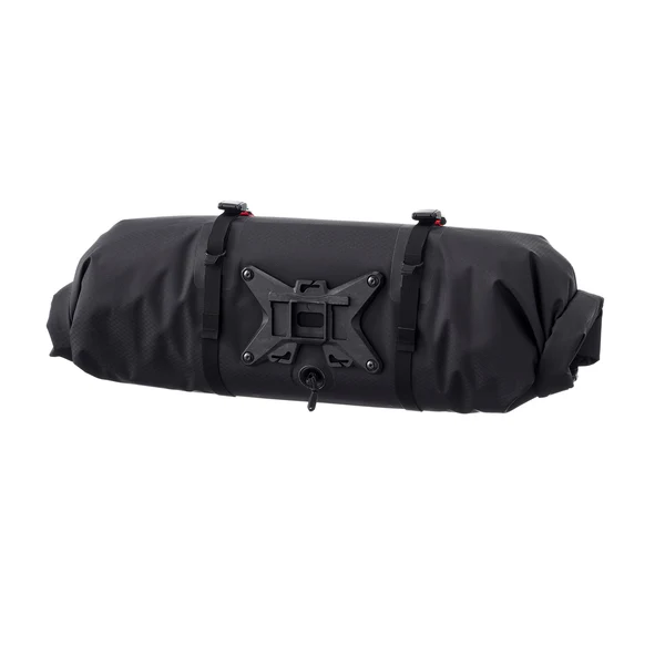 Ein neues Befestigungssystem, das Bar-Lock, ermöglicht die Anbringung und die Demontage der wasserdichten Handlebar-Pack QR (Quick Release) in kürzester Zeit. Die Mitnahme ist dadurch beispielsweise beim Erreichen des Ziels innerhalb von Sekunden problemlos möglich. Dank der Bar-Lock Seilbefestigung sitzt diese Bikepackingtasche zudem absolut stabil am Lenker, auch bei rauerem Gelände. Innenkompressionen und die durch den Rollverschluss variable Höhe unterstützen das sichere Verstauen von Equipment. Zwei weitere Haken mit CamLock-Verschluss auf der Vorderseite schaffen zudem weitere Möglichkeiten zur Komprimierung. Die Anbringung der Bikepacking-Tasche erfolgt ausschließlich am Lenker bzw. dem Vorbau. Das elf Liter fassende und nur 530 Gramm leichte Handlebar-Pack QR wird von oben beladen und ist durch die schmale Bauweise von 32 Zentimetern auch ideal für Gravel- und Rennlenker geeignet. Seitliche Außentaschen gestatten das Verstauen von Kleinteilen oder Snacks auf welche auch während der Fahrt zugegriffen werden soll. Die PVC-freie Tasche aus abriebfestem Nylongewebe ist natürlich nachhaltig hergestellt in Deutschland. Die maximale Zuladung beträgt fünf Kilogramm. Das optionale Zubehör Handlebar-Pack QR Inner Pocket hilft Ordnung zu bewahren und schafft Raum für die Unterbringung von wichtigen Utensilien wie Bargeld, Karten oder dem Handy. Produktdetails: Reflektierendes Logo und Reflektor erhöhen die Sichtbarkeit Technische Daten Volumen: 11 LGewicht: 530 gBreite unten: 26 cmBreite oben: 32 cmHöhe: 22 cmTiefe: 18 cmZuladung: 5 kgMaterial: PS21R, PS33