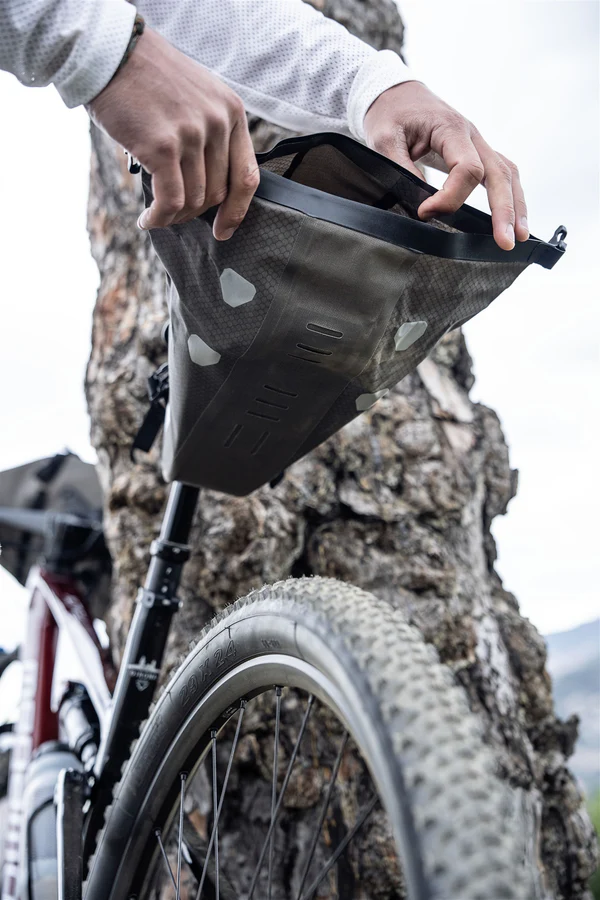 Auf geht’s zum nächsten Microadventure! Das Herzstück deiner Bikepacking-Ausrüstung, das ORTLIEB Seat-Pack, wird mit extra starken Klettverschlüssen einfach an die Sattelstütze montiert. Praktischer Nebeneffekt: die Satteltasche dient zugleich als Schutzblech im Gelände. Das geräumige, wasserdichte Seat-Pack sorgt zuverlässig für trockenen Klamottennachschub. Die Tasche lässt sich durch das seitliche Abspannen des Rollverschlusses clever zwischen 8 und 16,5 L bzw. zwischen 4,5 und 11 Litern Volumen variieren, je nachdem, wie lange du unterwegs bist. Ein zusätzliches Ventil sorgt schnell und einfach für Kompression und noch mehr Kompaktheit. Für eine Tagestour kannst du das Seat-Pack ideal als Rucksack-Ersatz verwenden, egal ob du mit dem Cross- oder Mountainbike, mit dem Rennrad oder E-Mountainbike unterwegs bist. Die Tasche ist in zwei Größen erhältlich.Sechs Zentimeter Anbringhöhe an der Sattelstütze reichen bei der kleineren der beiden Taschen bereits aus, deshalb eignet sich die kompaktere Variante ideal für kleinere Rahmengrößen, Fullys und Bikes mit absenkbarer Sattelstütze. Produktdetails: Verstärktes Gewebe an den Kontaktstellen zum Sattel Vertikale Daisy Chain für Rücklicht Auch für Carbon-Sattelstützen geeignet Leichtes Gewicht Vier 3M Scotchlite Reflektoren für unterschiedliche Rollzustände Technische Daten Volumen: 11 L / 16, 5 LGewicht: 11 L: 345 g / 16,5 L: 490 gB x H x T: 11 L: 40 x 26 x 15 cm / 16,5 L: 64 x 30 x 22 cmZuladung: 11 L: 3 kg / 16,5 L: 5 kgMaterial: PS21R, PS33
