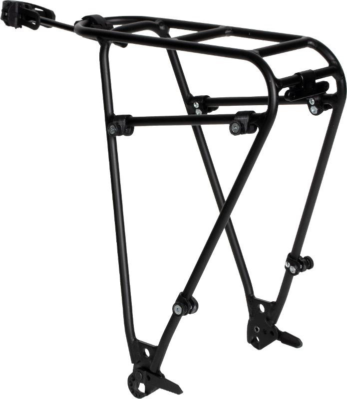 Gepäckträger mit Quick-Release System zur schnellen Montage und Demontage. Ermöglicht direkte Anbringung der Taschen mit QL1/2/2.1/2.2 oder Top-Lock System. QL3/3.1 Halterungselemente werden mitgeliefert und können zusätzlich angeschraubt werden. Geeignet für Räder mit einer maximalen Reifengröße von 28"/50 mm bei der Montage über eine Adapterachse. Horizontale und vertikale Streben mit ø 10 mm Rohrdurchmesser. Inkl. Montageset für die Montage an Gepäckträgergewinden im Rahmen. Zur Montage an der Achse ist eine separat erhältliche Adapter-Steckachse notwendig. Maximale Zuladung: 20 kg