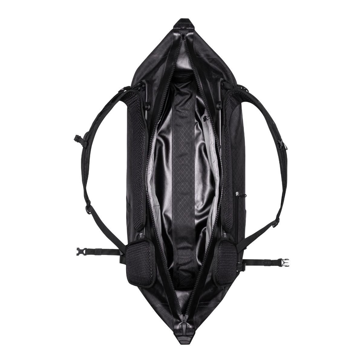 Die Duffle schließt Bekleidung & Co. wasserdicht ein und ist durch ihre bequem gepolsterten, auch als Tragegriffe verwendbaren Schultergurte schnell zum praktischen Rucksack umfunktionierbar.